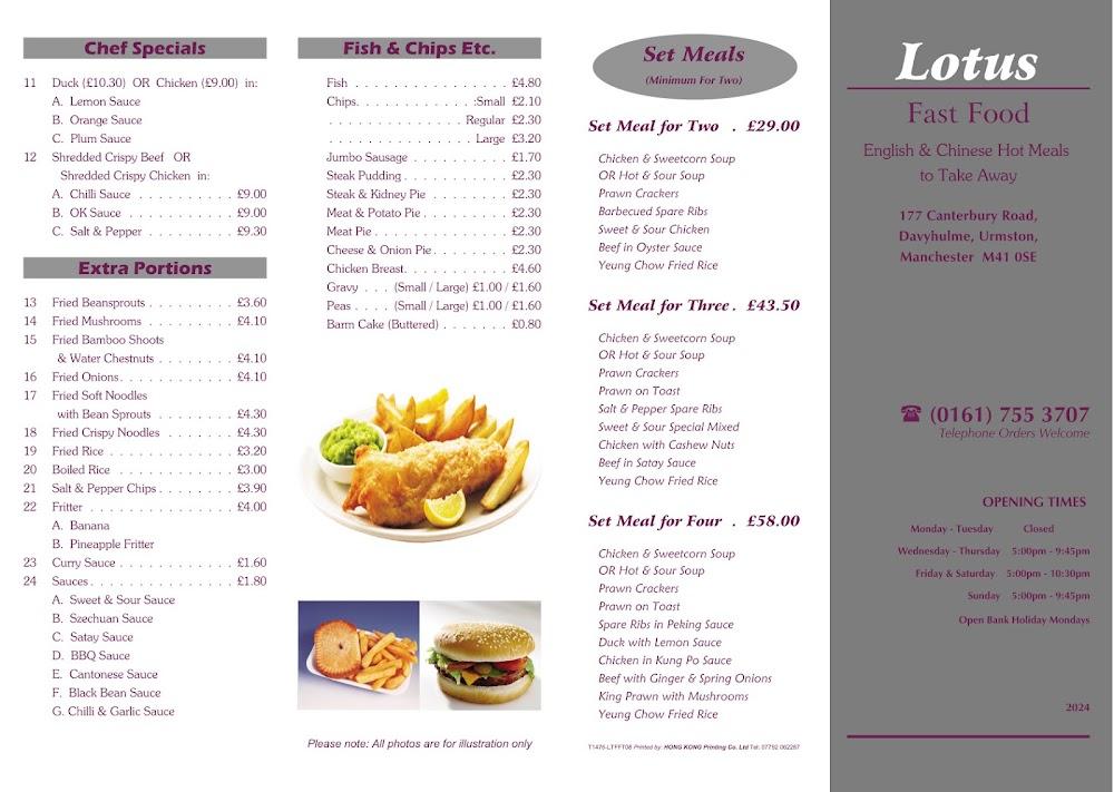 Nestled in the heart of Urmston, Lotus greets diners at 177 Canterbury Rd with an inviting vibe. This area boasts a community-centric atmosphere; you'll find friendly faces from the locals to the staff. Lotus is easily accessible, featuring a wheelchair-accessible entrance and seating, and offers free street parking for those driving in. The establishment thrives on convenience, allowing diners to either enjoy a cozy meal inside or opt for speedy takeaway service. Open every day of the week, including weekends, it fits seamlessly into busy schedules or casual dining outings. Reservations are accepted, ensuring that a table is always waiting for you, especially during peak hours. Its longevity speaks volumes; Lotus has been a staple in the greater Manchester area since 1984. This establishment has garnered a loyal following among locals, often referred to as one of the best spots for Chinese food outside Chinatown, making it a celebrated gem in the community.